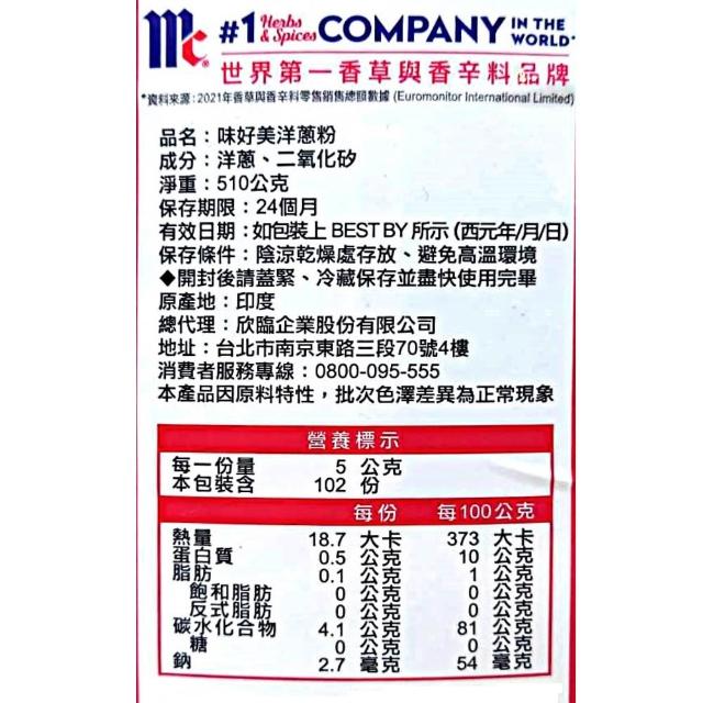 味好美洋蔥粉 510公克 ( 大白洋蔥 洋蔥 洋蔥粉 洋蔥顆粒 粉末 顆粒)