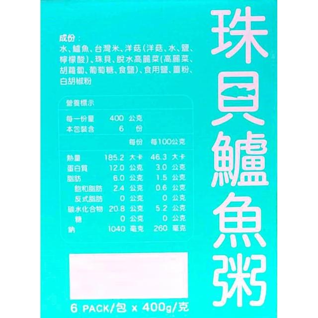 粥易珠貝鱸魚粥 400公克 6 包 (珠貝 鱸魚粥 高蛋白 金目鱸魚 鱸魚)