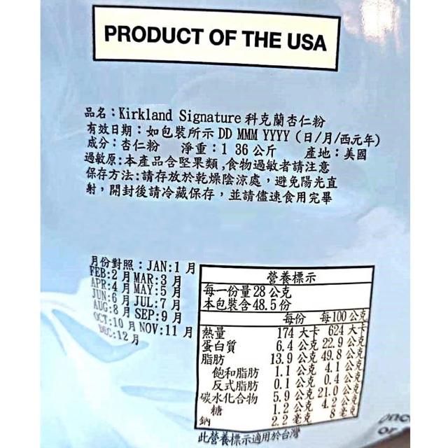 Kirkland Signature 科克蘭杏仁粉 1.36公斤 (烘焙用杏仁粉 烘焙 杏仁 )