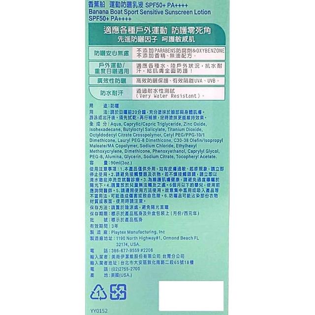 Banana Boat 香蕉船淨護系列運動防曬乳液 SPF 50+ PA++++ 90毫升 (防水 耐旱 戶外防曬 戶外運動)