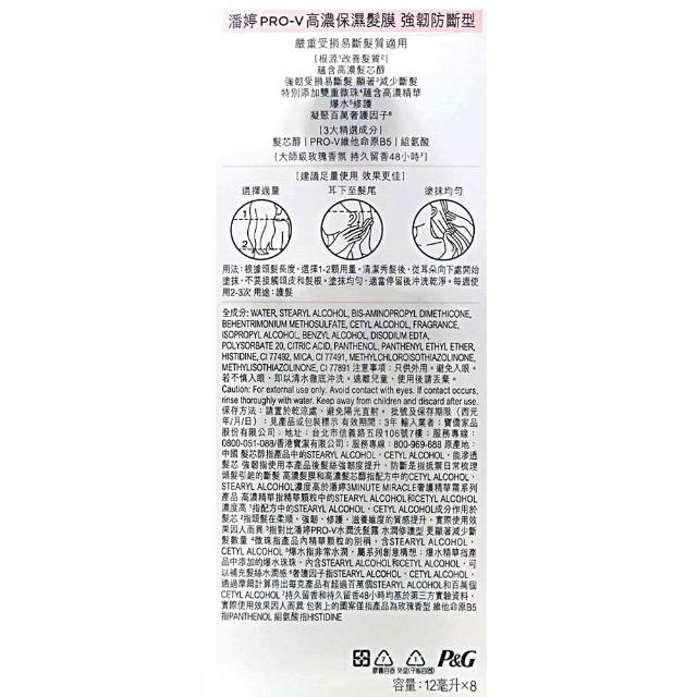 PANTENE 潘婷髮芯醇 PRO-V 高濃度保濕髮膜 12毫升 8入 (烏木玫瑰 爆水膠囊 髮膜 高濃度 保濕)