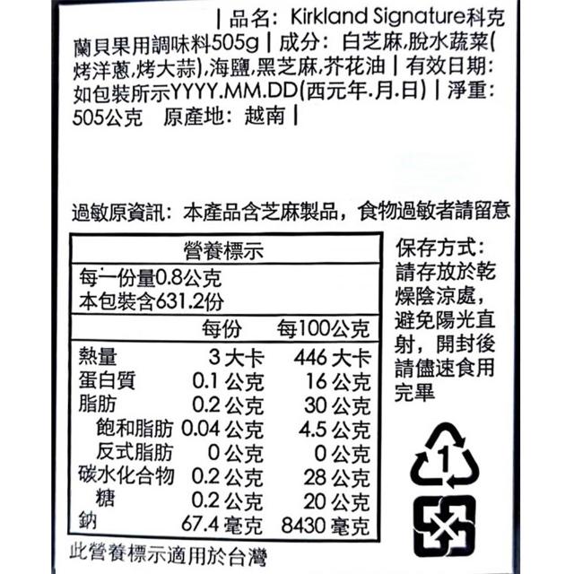 Kirkland Signature 科克蘭貝果用調味料 505公克 (貝果 芝麻 洋蔥 大蒜 海鹽 黑芝麻 烤洋蔥 烤大蒜 BAGEL)