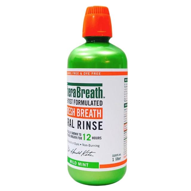 TheraBreath 凱斯博士漱口水 溫和薄荷 1公升 (溫和 薄荷 無色 無酒精 活氧配方 無灼熱感)