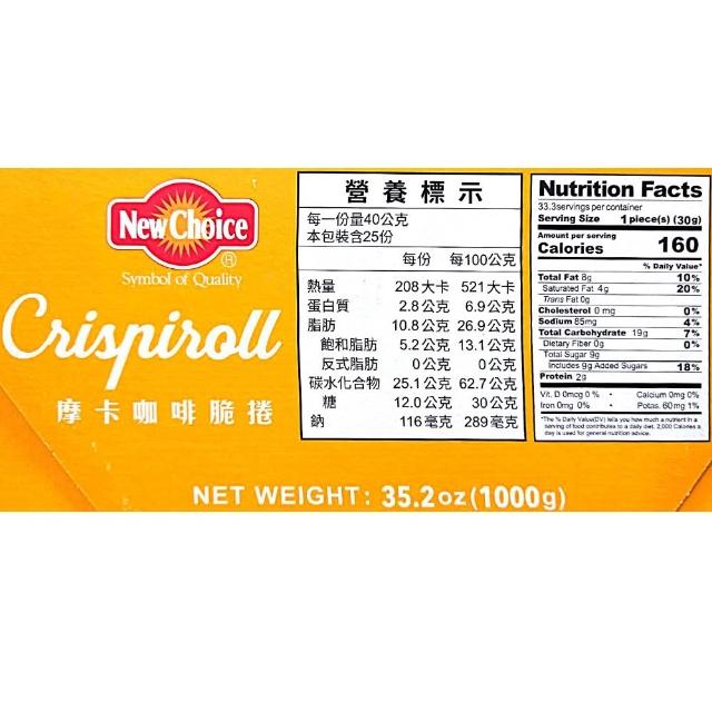 New Choice摩卡咖啡脆捲 1公斤 (咖啡捲心酥 摩卡 咖啡 捲心酥 可可粉 咖啡粉)
