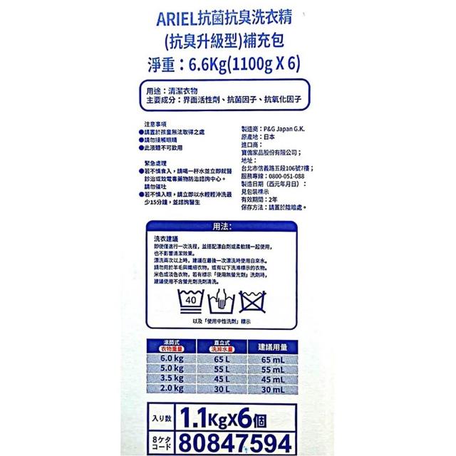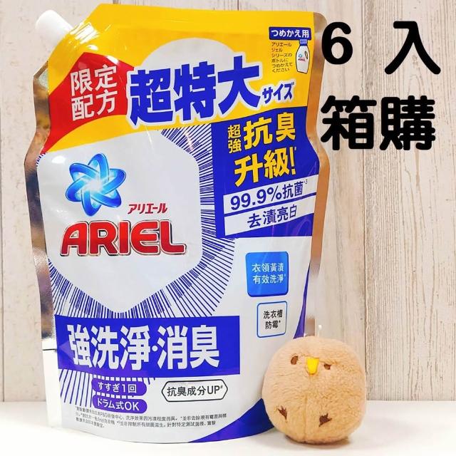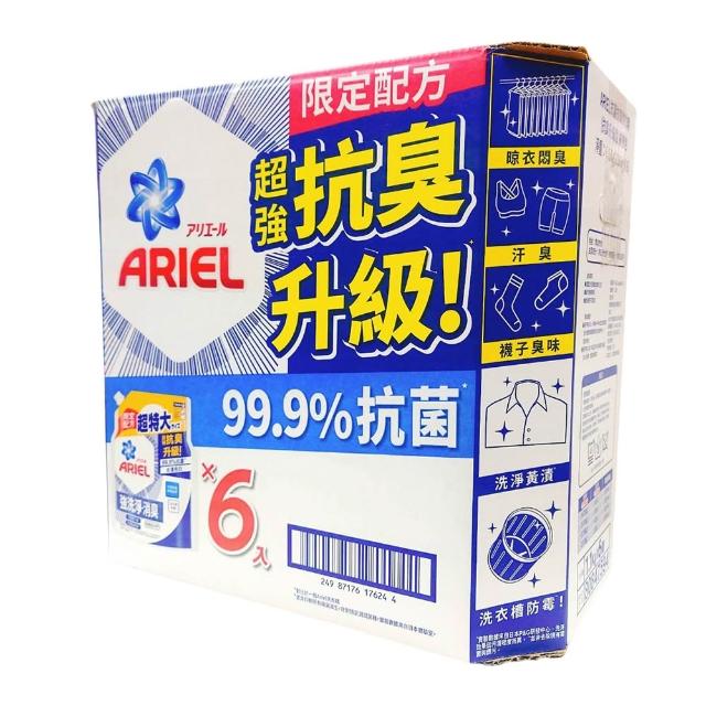 ARIEL抗臭新配方洗衣精補充包 1100公克 6入(超特大 強洗淨 消臭 抗臭 99.9%抗菌)