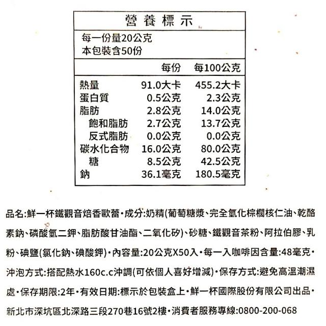 鮮一杯鐵觀音焙香歐蕾 20公克 50入 (鐵觀音 歐蕾 茶歐蕾 奶茶 鐵觀音奶茶 奶茶粉)