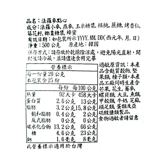 - 法羅小麥、燕麥、核桃、烤杏仁
