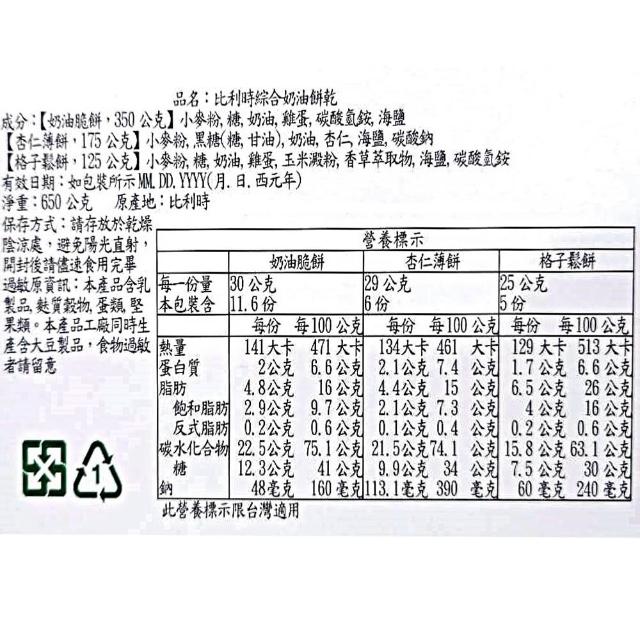 Jules Destrooper綜合奶油餅乾 650公克 (奶油脆餅 杏仁薄餅 格子鬆餅)