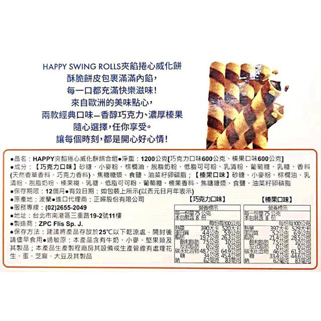 夾餡捲心威化餅綜合組 1200公克 (巧克力 榛果 捲心酥 威化捲)