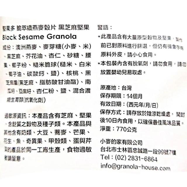 Granola House宴麥森林 黑芝麻堅果多燕麥穀片 770公克 (堅果多 脆萃纖 燕麥穀片 黑芝麻 核桃 腰果 亞麻籽 南瓜籽)