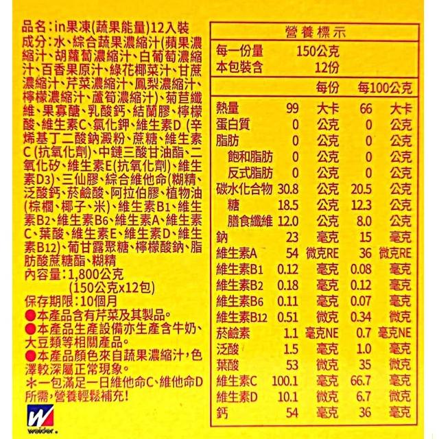 台灣森永in果凍 蔬果能量 150公克 12入 (能量果凍 蔬果凍 維生素 膳食纖維)