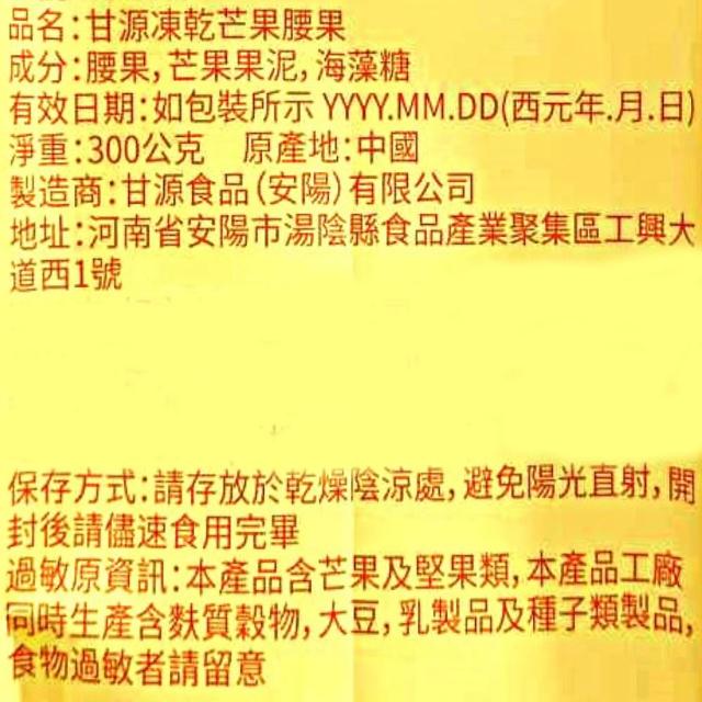 Ganyuan 甘源凍乾芒果腰果 300公克 (凍乾 芒果 果泥 腰果 堅果)