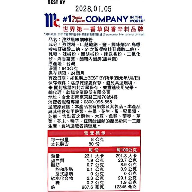 味好美孜然風味調味粉 640公克 (孜然粉 香料粉 辣椒 洋香菜 黑胡椒)