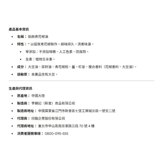 李錦記勁麻青花椒油 300毫升 (花椒油 青花椒油 花椒 青花椒)