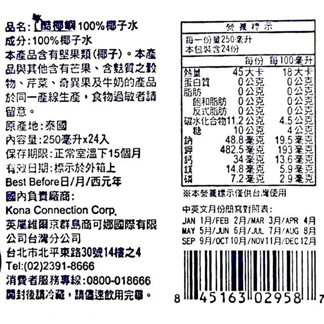 KOH COCONUT 酷椰嶼純椰子水 250毫升 24入 (100% 椰子水)