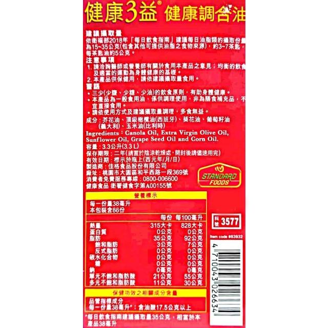 得意的一天三益調和油 3.3公升 (調和油 食用油 就花遊 橄欖油 葵花油 葡萄籽油 玉米油)