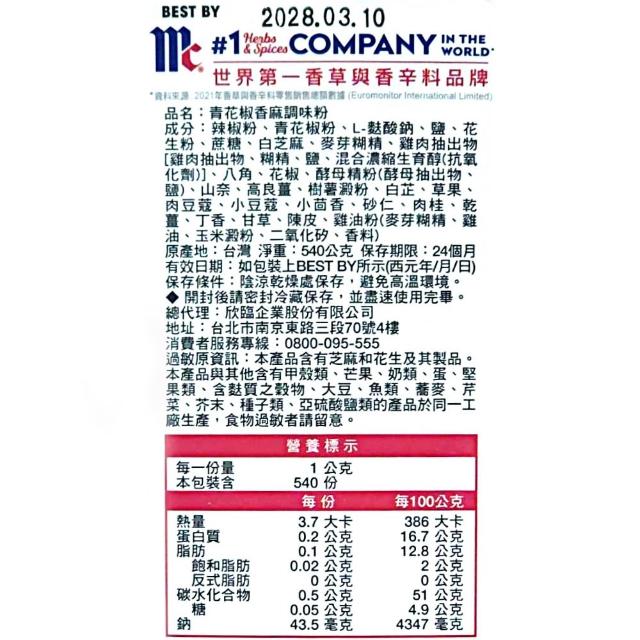 味好美青花椒香麻調味粉 540公克 (青花椒 辣椒 青花椒粉 辣椒粉 香料 調味料)