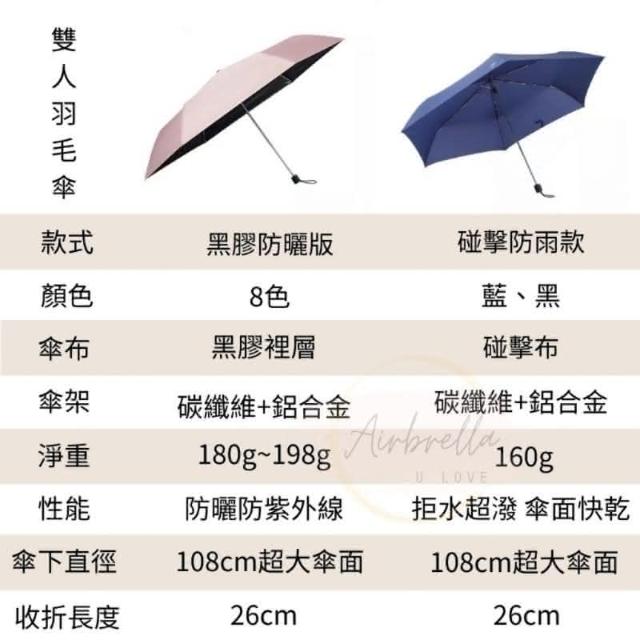 ☂️108cm 雙人羽毛傘 大傘面 日本 輕量傘 羽毛傘 黑膠 防曬 陽傘 雨傘 碳纖維 鉛筆傘 出國 登山 交換禮物