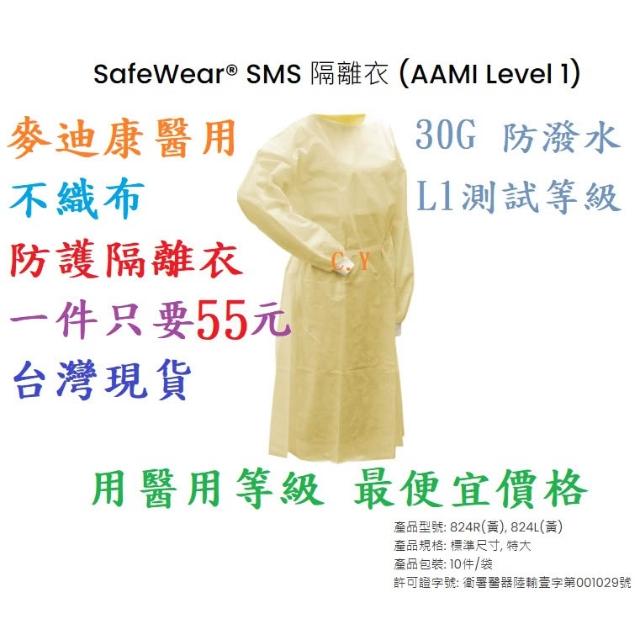 Medicom 麥迪康超悅購物 麥迪康 醫用隔離衣 防護衣 10件/包(防護衣 隔離服 PP材質)