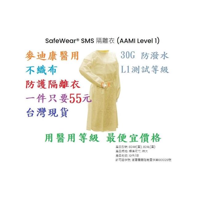 Medicom 麥迪康超悅購物 麥迪康 醫用隔離衣 防護衣 10件/包 (防護衣 隔離服 PP材質)