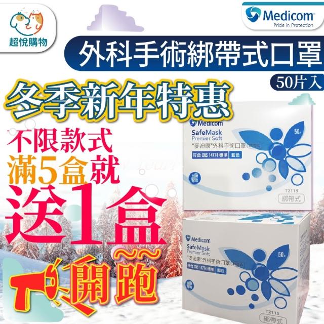 Medicom 麥迪康超悅購物 (買5送1) 麥迪康 外科綁帶口罩 50片裝/盒(醫用口罩 手術口罩 外科專用)