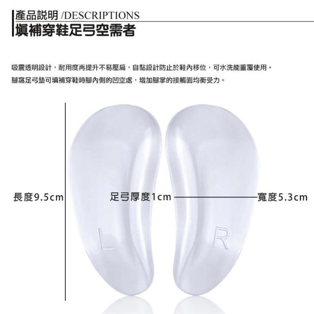 鞋博士嚴選鞋材晶透內測足弓墊(高跟鞋腳弓弧度凹空填補 穿鞋有支撐步行更穩固)