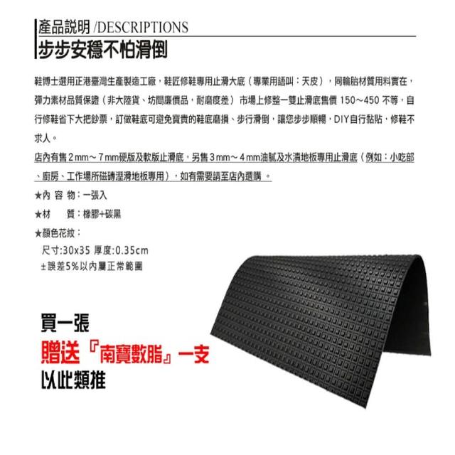 鞋博士嚴選鞋材油膩水漬磁磚地板專用鞋底防滑墊止滑墊(臺灣製橡膠)