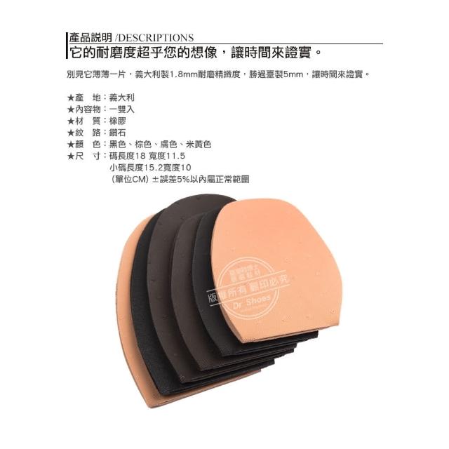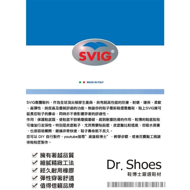 鞋博士嚴選鞋材義大利製SVIG橡膠鞋底前掌止滑底鑽石紋(頂級耐磨防滑 橡膠純度高)