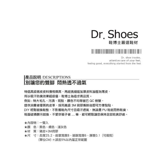 鞋博士嚴選鞋材嚴選真皮鞋墊3M背膠吸汗鞋墊防臭鞋墊(足部乾爽舒適/腳汗多告別鞋臭)