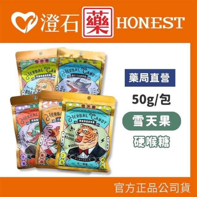 統一製菓 雪天果 硬喉糖 雪鹽檸檬 原野薄荷 蜂蜜檸檬 青梅精 岩鹽枇杷 清爽潤喉 雪天果喉糖 50g 澄石藥局