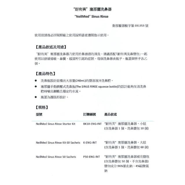 NeilMed 耐有美 塞那靈洗鼻器 附60包鹽鼻過敏 鼻不適 黃鼻涕