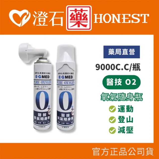 醫技 O2氧氣隨身瓶 EG 9000cc/罐 氧氣瓶 氧氣罐 登山運動 台灣製造 澄石藥局✚實體店面