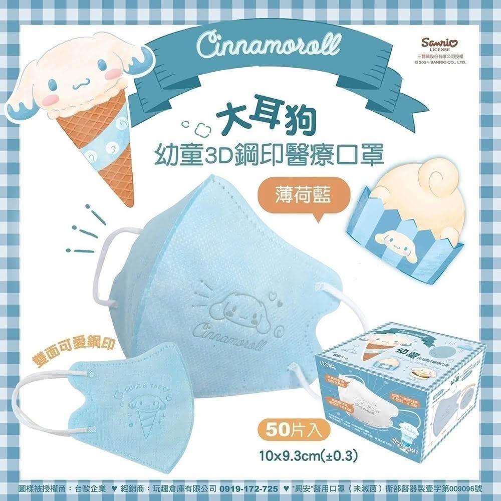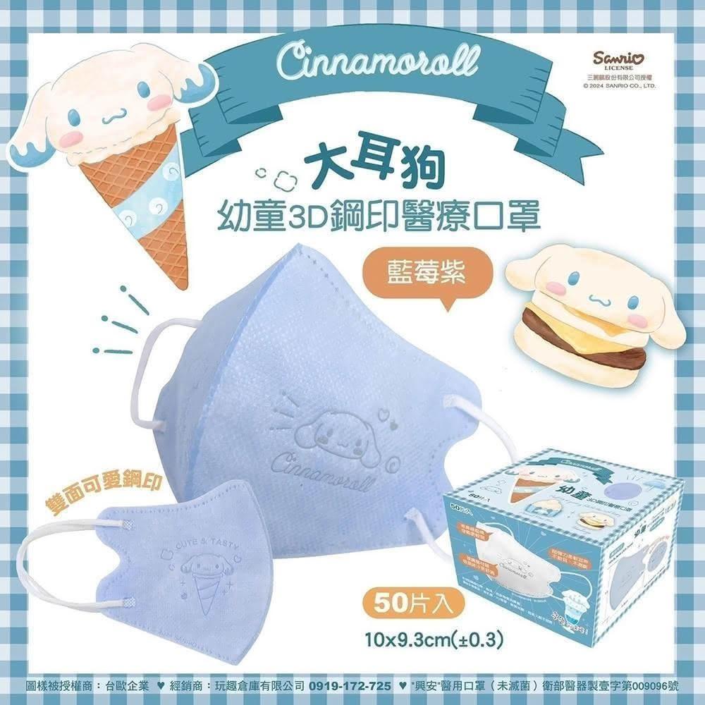 ataraxis 興安兒童 幼童 中童 三麗鷗 大耳狗 酷洛米 美樂蒂 醫用口罩 3D口罩 3盒組 50入/盒 澄石藥局✚實體店面