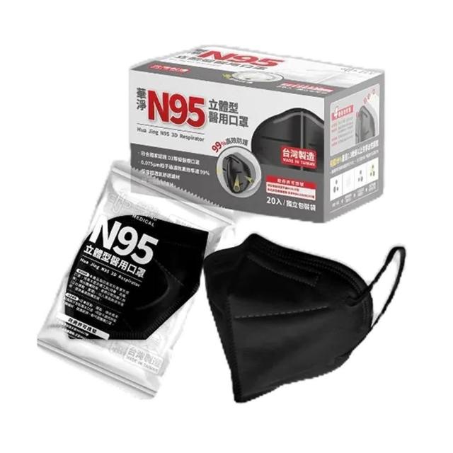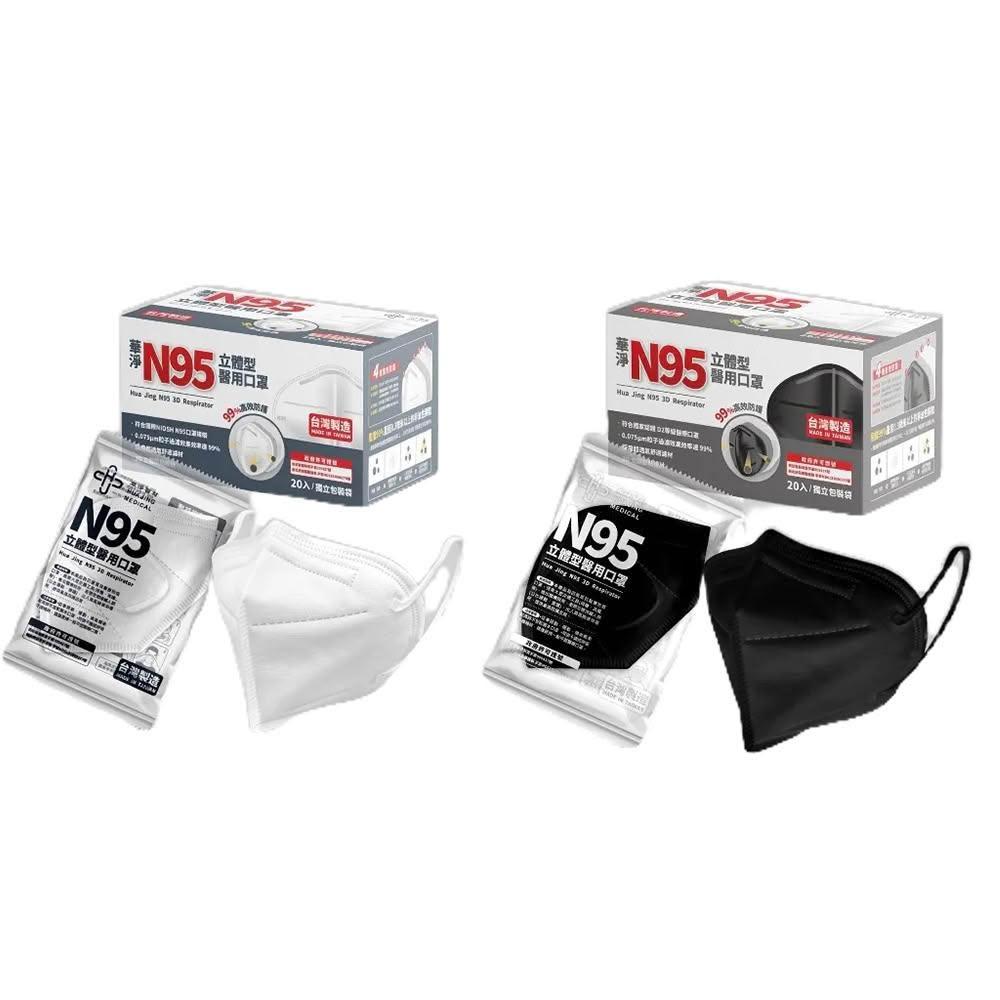 華淨醫材N95立體型醫用口罩 黑色/白色 成人 醫用口罩 20入/盒 澄石藥局✚實體店面