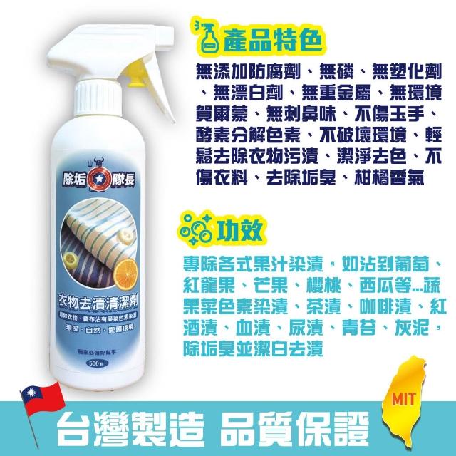 推薦【除垢隊長】 衣物去漬清潔劑500ml 衣物除垢 血漬 泥垢 水果漬 蔬菜漬 洗衣 衣物去漬 色素染色 尿漬