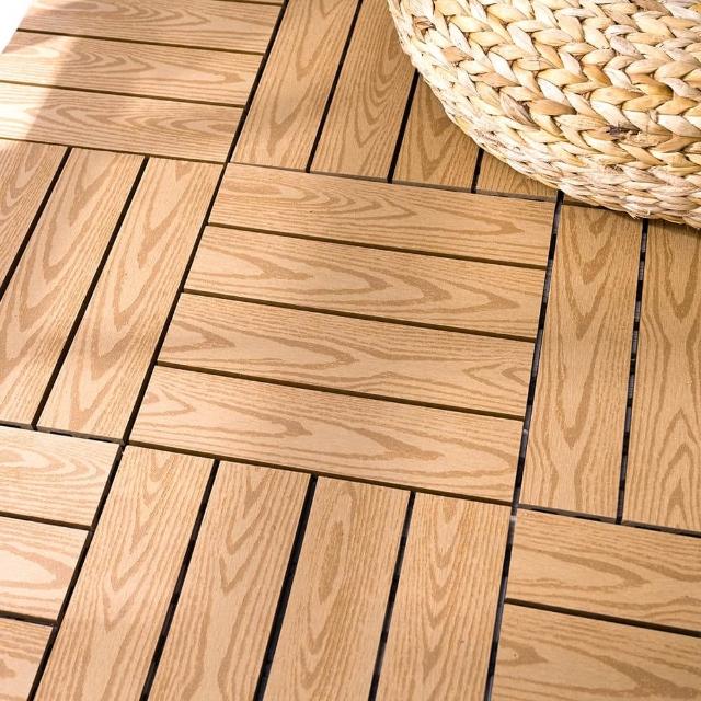 WANBAO0.25坪 卡扣式拼接塑木壓木紋地板(塑木地板、陽台修繕、地板、戶外、園藝地板)