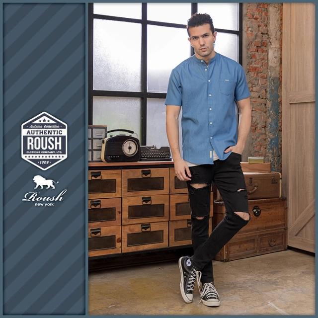 Roush現貨 小鐵牌亨利領短袖牛仔襯衫(2315109)