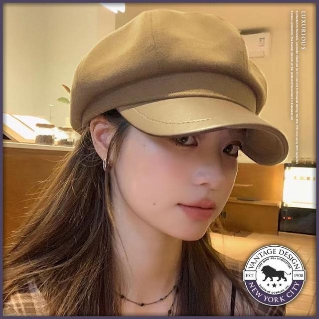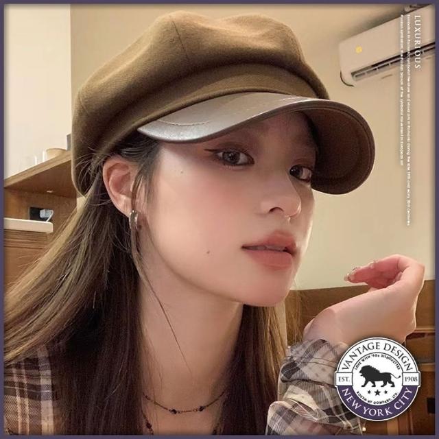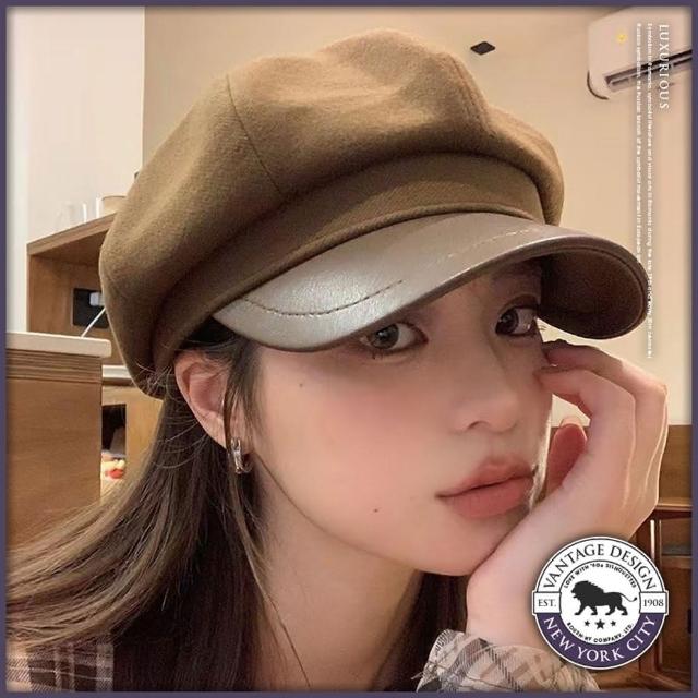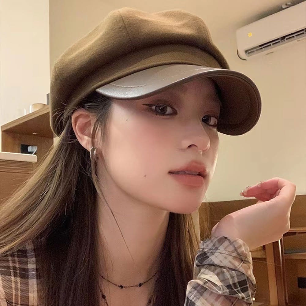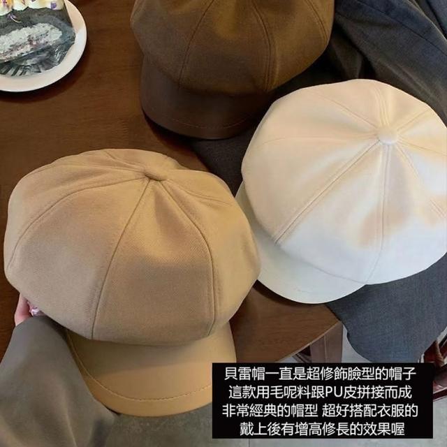 Roush現貨 女生皮質拼接毛呢貝雷帽(2341A18)