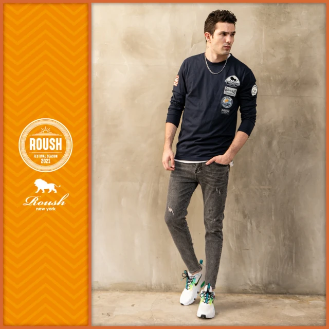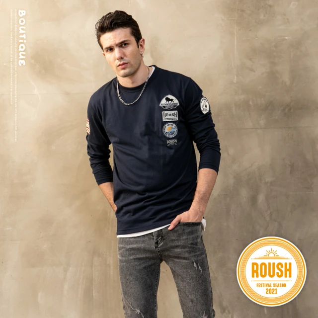 Roush台灣製/MIT/現貨 美式多貼布設計側開岔重磅長T(2010525)