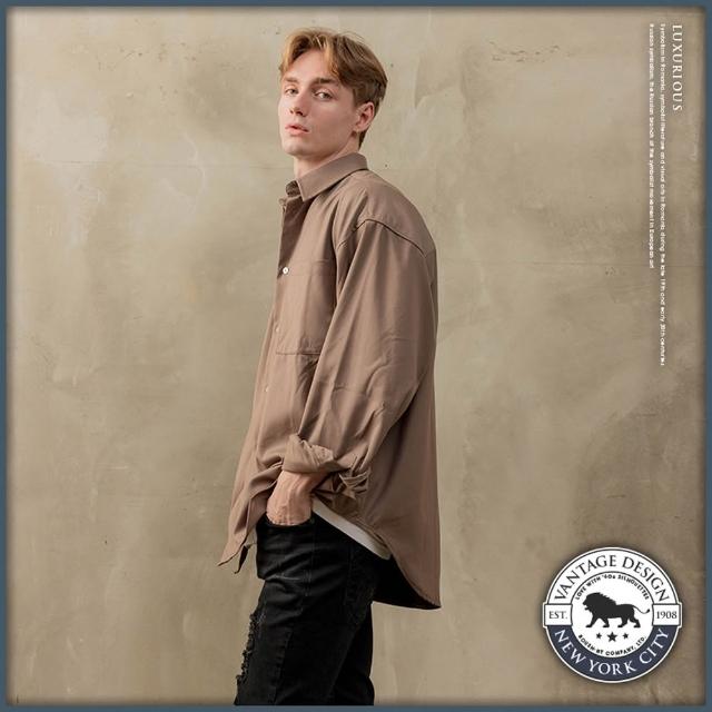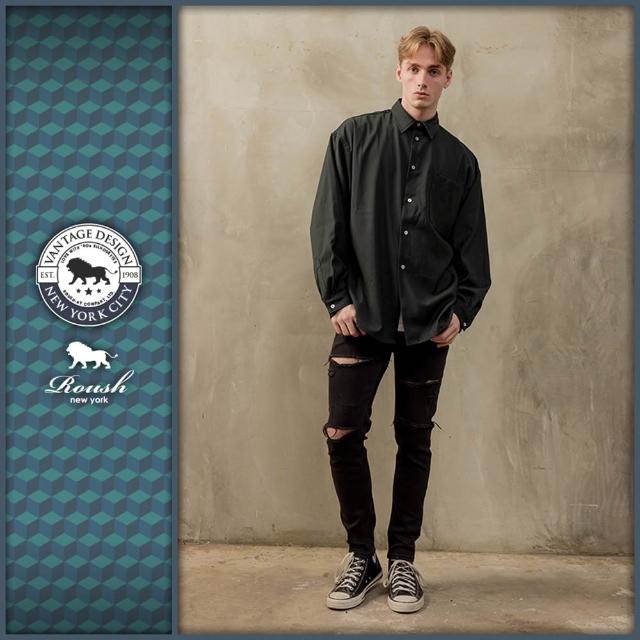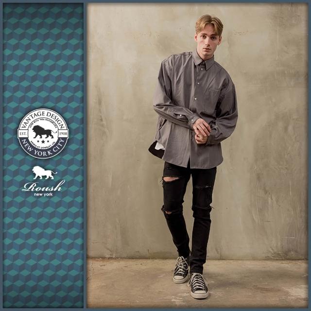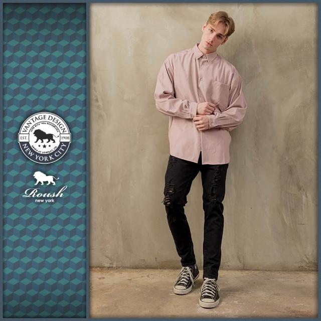 Roush現貨 超質感貝殼釦重磅西裝料寬版襯衫(92051)