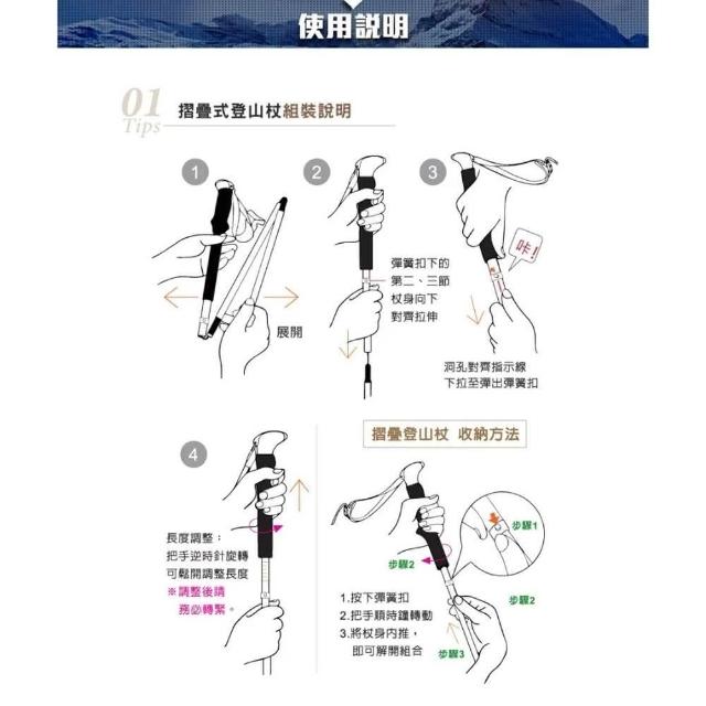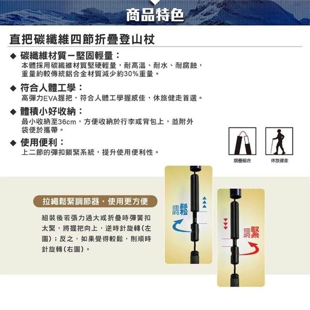 ATUNAS 歐都納直把碳纖維四節摺疊登山杖 125/36cm A1WSGZ02N A1WSGZ03N