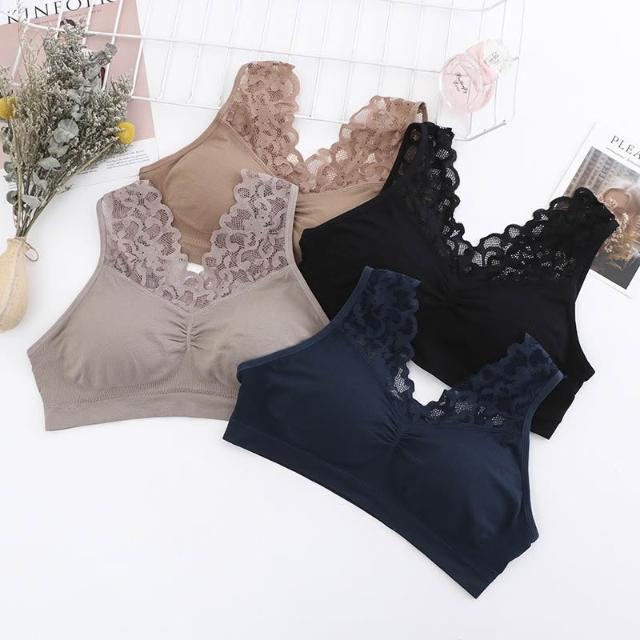 超美蕾絲美背無鋼圈 大碼內衣 大碼背心 3036-C 大碼女裝 大尺碼無鋼圈蕾絲內衣 棉花糖中大尺碼