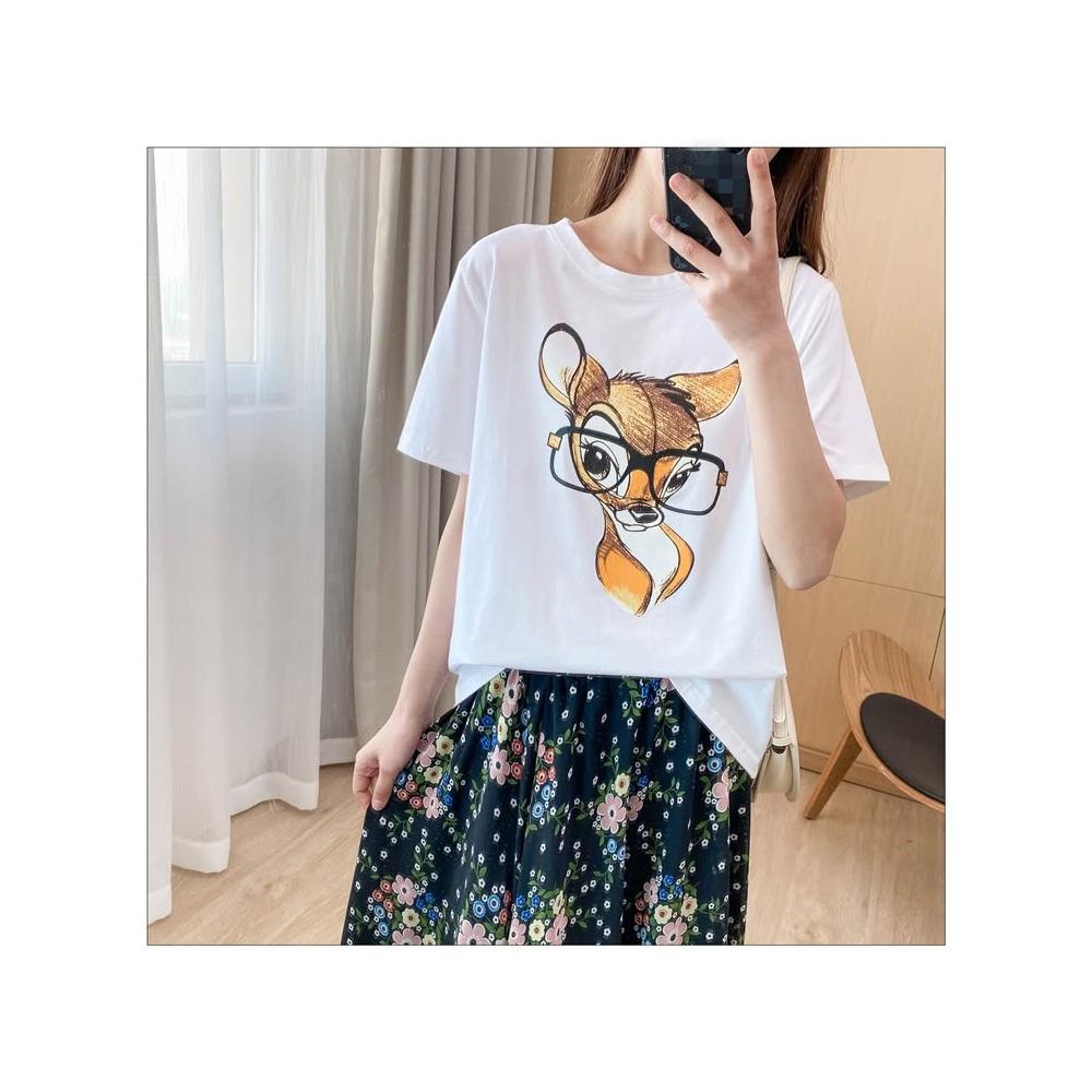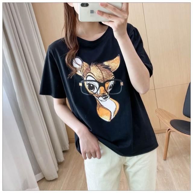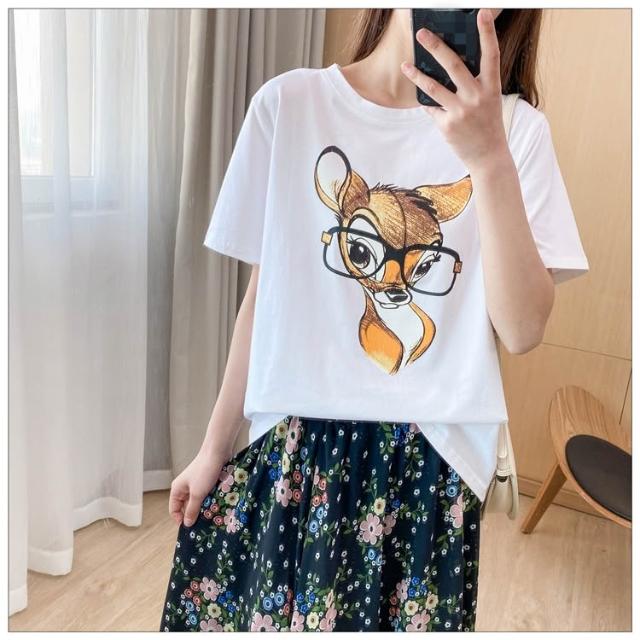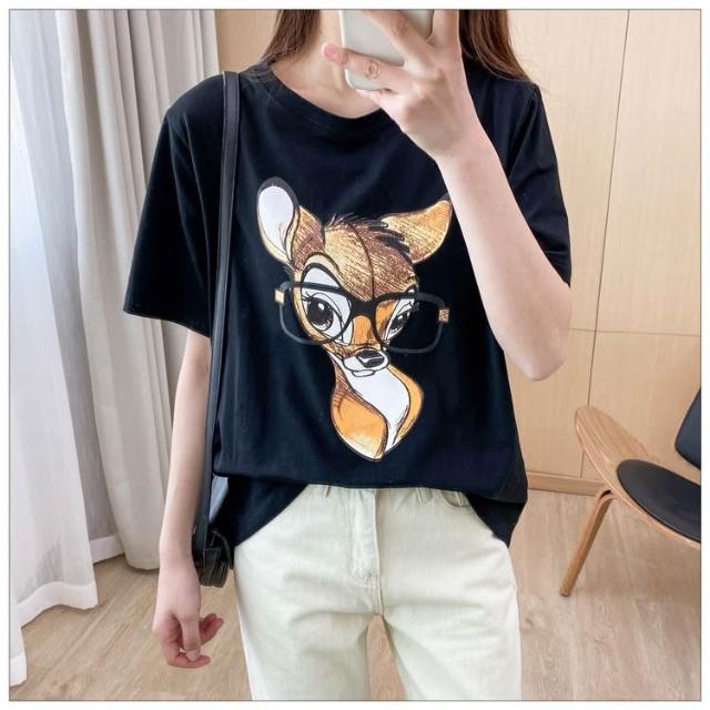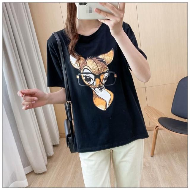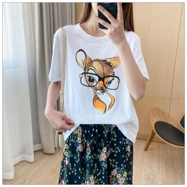 棉 大碼上衣 大碼印花純棉百搭短袖上衣【01-F棉花糖中大尺碼