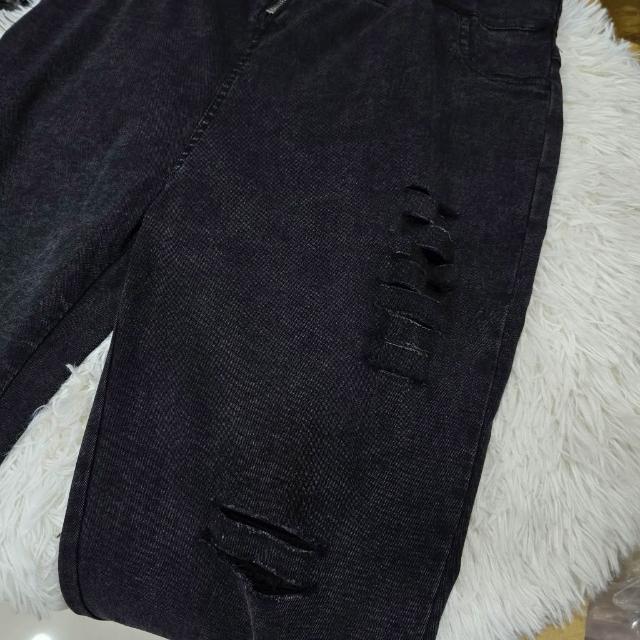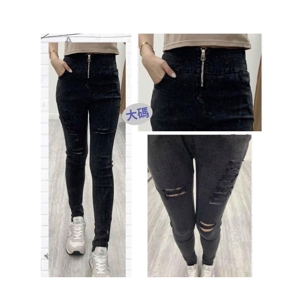 尺碼長褲 大碼牛仔褲 大碼經典煙灰水洗彈力顯瘦黑褲【7233大尺碼女裝