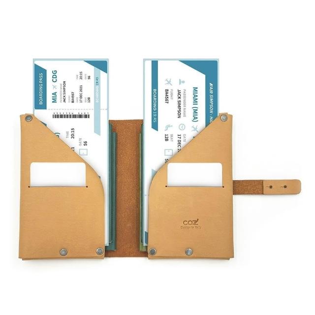 COZI義大利植鞣皮革 家庭護照套 護照夾 - 可收納4本護照、登機證及2張卡片