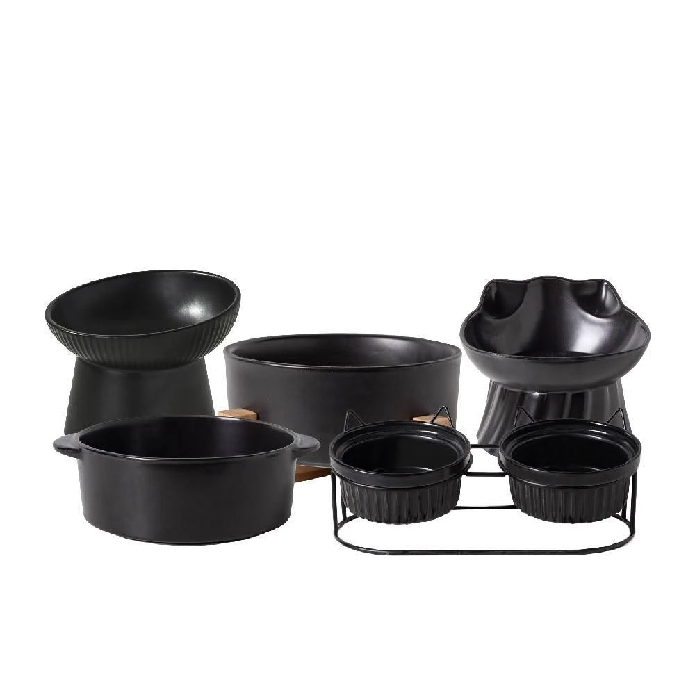 寵星球 寵物黑色系列陶瓷碗 寵物飲水碗 寵物碗 寵物餵食碗 陶瓷碗 飲水碗 貓咪水碗 飼料碗 貓咪水碗 護頸碗