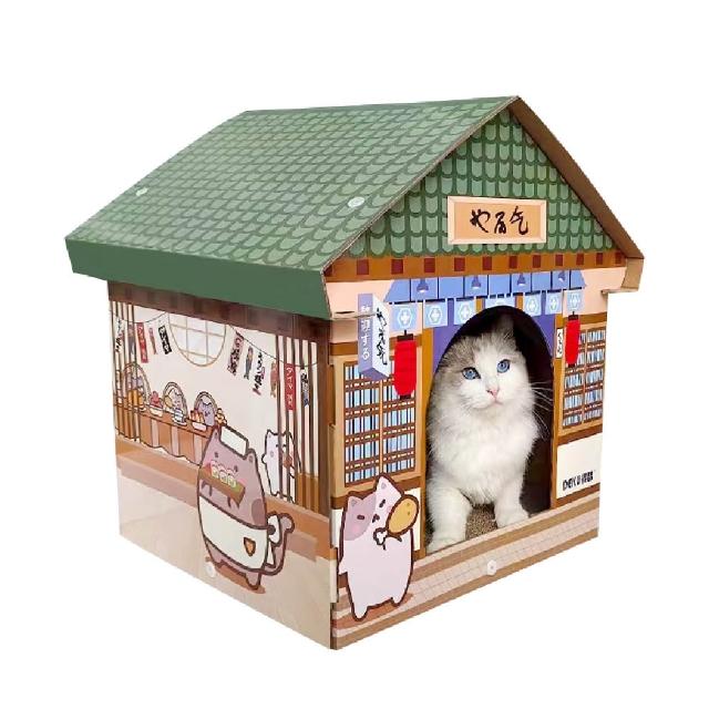 寵星球 綠色尖頂貓抓屋 紙箱貓屋 貓屋 貓抓板 貓玩具 貓床 貓用品 貓咪磨爪屋