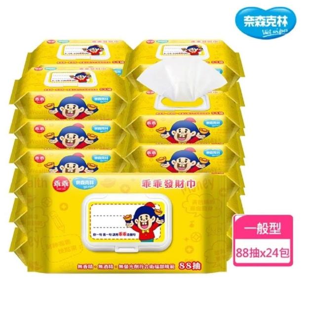奈森克林乖乖純水濕紙巾掀蓋88抽x24包/箱(綠-金順濕巾/黃-發財濕巾)