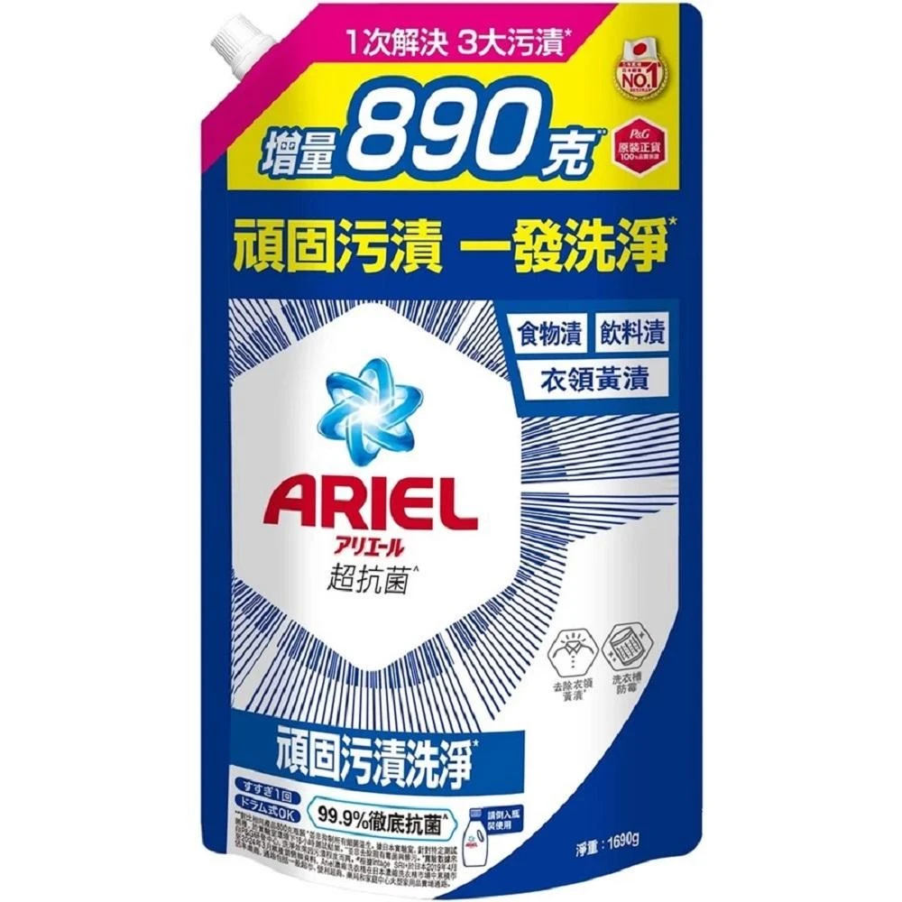ARIEL新誕生超濃縮深層抗菌除臭洗衣精補充包 1690gx6袋/箱 (經典抗菌-藍色/室內晾衣-綠色/自然微香)