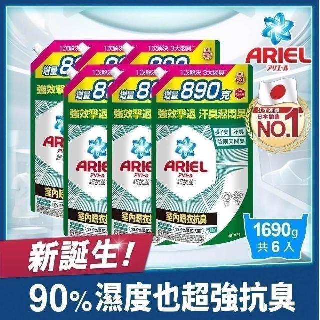 ARIEL新誕生超濃縮深層抗菌除臭洗衣精補充包 1690gx6袋/箱 (經典抗菌-藍色/室內晾衣-綠色/自然微香)